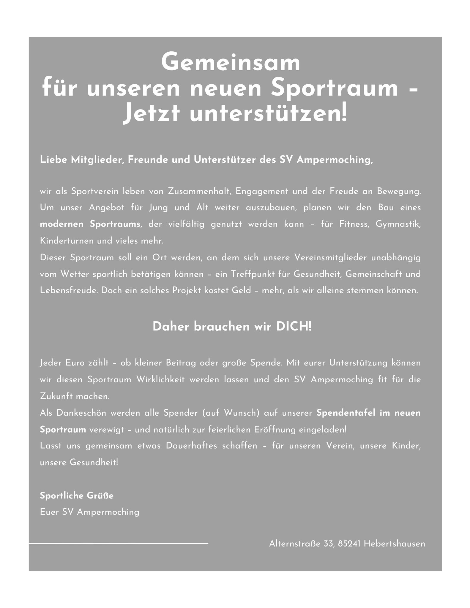 Im Januar 1966 stellten Albert Klingensteiner und Josef Fottner dem SV Ampermoching ein neues Grundstück von zwei Tagwerken, für zwei Jahre zur Verfügung.