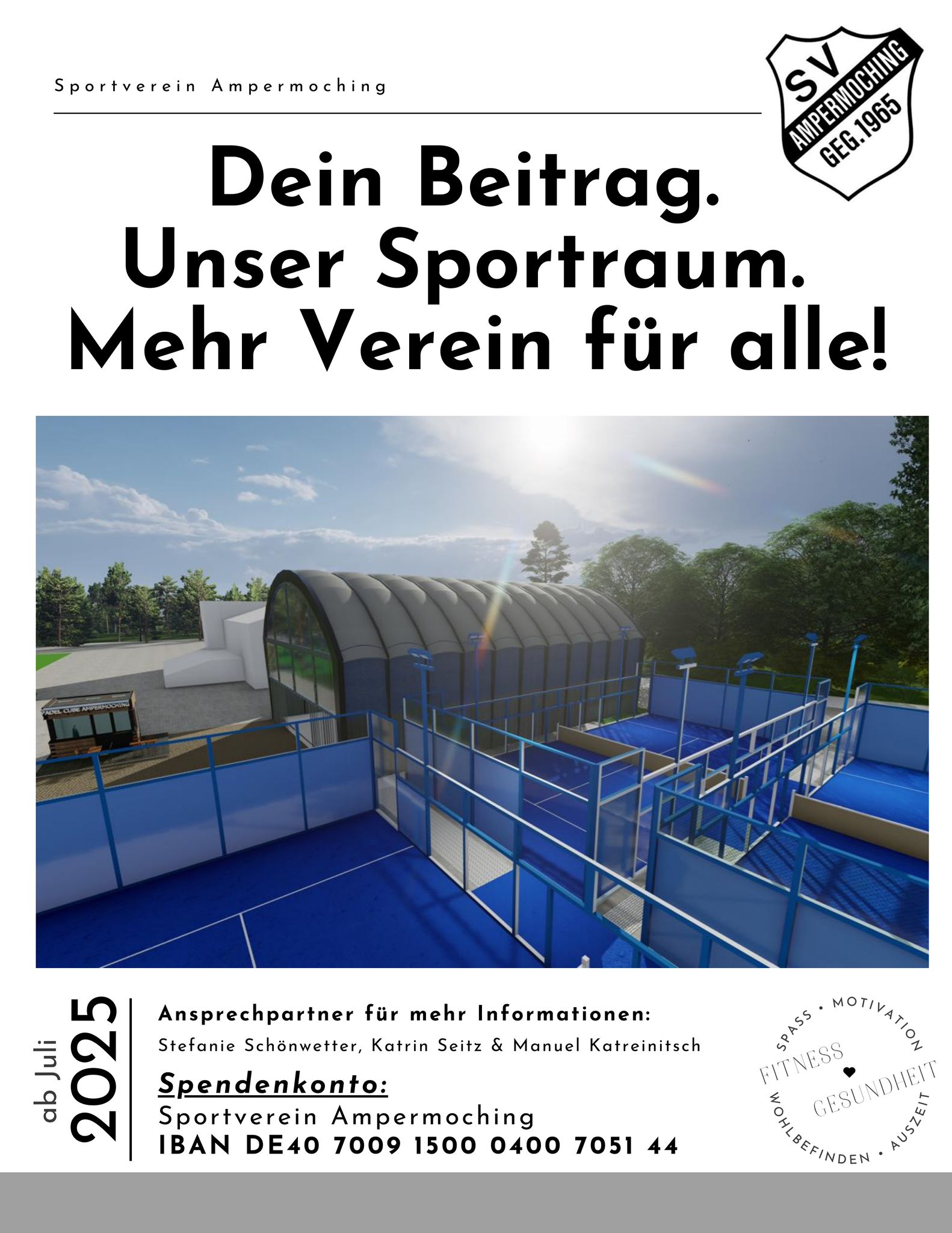 Hinter dem Nefzger Anwesen entstand ein neuer Fußballplatz. Im September 1971 erhielt der SV Ampermoching im Zuge der Flurbereinigung von der damals noch bestehenden Gemeinde Ampermoching ein Grundstück in der Größe von etwa sechs Tagwerken. Bereits im selben Jahr wurde auf diesem Gelände ein Trainingsplatz errichtet. Problem hierbei waren Elektromasten, welche sich auf dem Gelände befanden. Diese wurden für 12000 DM entfernt. Bereits im Oktober 1972 war dann die Grundsteinlegung für das Vereinsheim, welches im August des darauffolgenden Jahres im Rohbau stand.